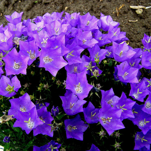 Колокольчик карпатский (Campanula carpatica) - это многолетнее травянистое растение из семейства Колокольчиковых, которое широко используется в декоративном садоводстве благодаря своей компактной форме и обильному цветению. Колокольчик карпатский представляет собой невысокое, компактное растение высотой около 20-30 см. Культура имеет густую подушковидную форму, благодаря чему его часто используют в качестве почвопокровного растения. Листья мелкие, сердцевидные или округлые, зелёного цвета, образуют густую прикорневую розетку. Цветение начинается в июне и продолжается до августа. Цветки колокольчика карпатского крупные для его размера, до 5 см в диаметре, чашевидные, синие, фиолетовые, голубые или белые, в зависимости от сорта. Цветы украшают растение на протяжении нескольких месяцев, образуя плотные цветочные коврики. Цветение настолько обильное, что почти полностью закрывает листву.