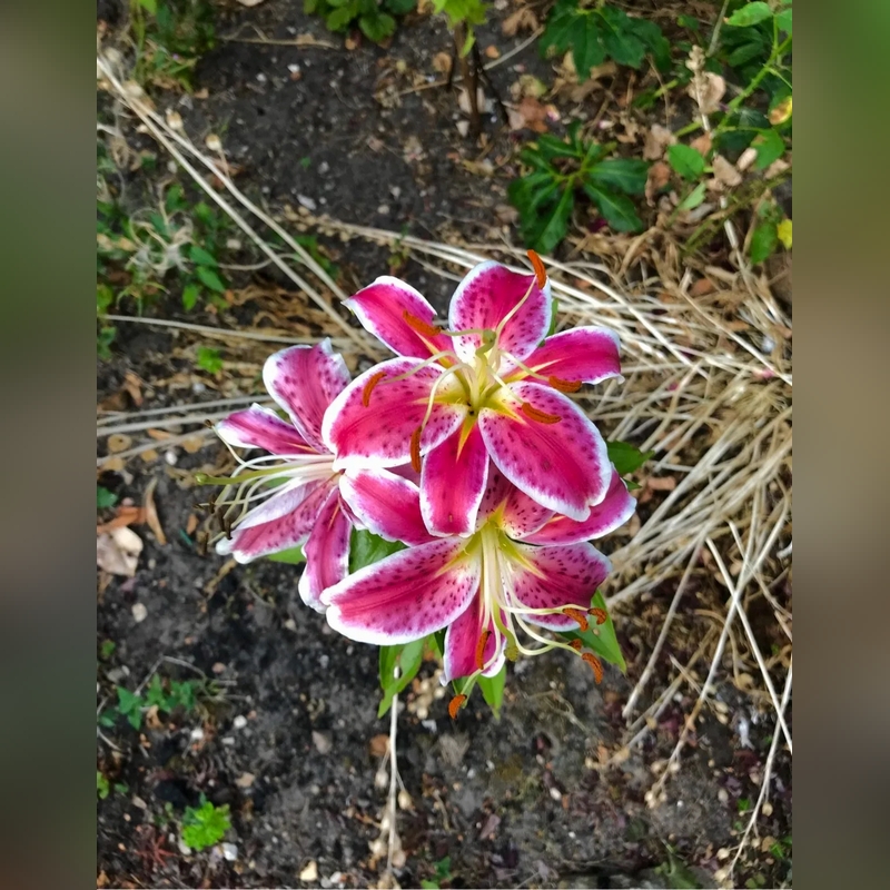 Лилия «Старфайтер» (Lilium Starfighter) — восточный гибрид лилии, который ценится за крупные, яркие цветки уникальной коралловой окраски с контрастными элементами, сильным ароматом и эффектным внешним видом. Этот многолетний луковичный гибрид формирует крепкий, прямой, облиственный стебель высотой 90–100 см. Листья темно-зеленые, ланцетные, с глянцевой поверхностью. Главная декоративная особенность сорта — экстравагантные цветки. Они очень крупные (диаметром 20–25 см), звездчато-чашевидной формы, направлены вверх и слегка в стороны. Окраска лепестков — яркая, насыщенная коралловая (розово-оранжевая) с многочисленными темно-красными или бордовыми выпуклыми крапинками (крапом). По краю каждого лепестка проходит четкая, контрастная белая или кремово-белая кайма. Цветки обладают интенсивным, сладким, пьянящим ароматом. В соцветии формируется от 3 до 7 бутонов. Цветение приходится на июль-август и длится 2–3 недели.