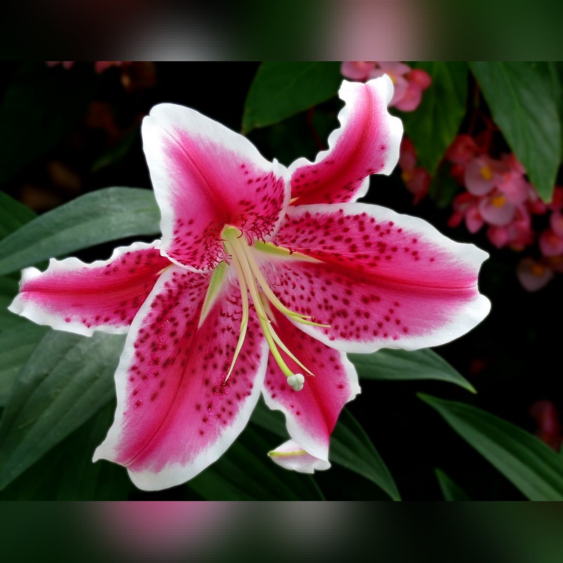 Лилия восточная «Старгейзер» (Lilium orientalis Stargazer) – популярный многолетний луковичный гибрид, который высоко ценится за экзотическую красоту цветков и интенсивный аромат. Это травянистое растение, достигающее в высоту 100-150 см, формирующее прочный прямостоячий стебель с темно-зелеными ланцетными листьями. Цветки крупные (диаметром 15-18 см), звездчатой формы, направленные вверх, с сильно загнутыми лепестками малиново-розового цвета с белой каймой и темно-красными крапинами. Аромат насыщенный, сладкий. Период цветения – июль-август, продолжительностью 2-3 недели.
