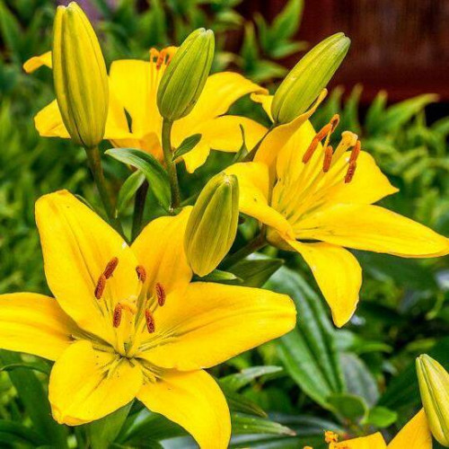 Лилия «Тампа» (Lilium 'Tampa') — азиатский гибрид лилии, который ценится за крупные, чистые солнечно-желтые цветки, обильное и продолжительное цветение, а также за неприхотливость и хорошую зимостойкость. Этот многолетний луковичный гибрид формирует крепкий, прямой, облиственный стебель высотой 80–110 см. Листья темно-зеленые, ланцетные, глянцевые, расположены густо. Главная декоративная особенность сорта — яркие, однотонные цветки. Они крупные (диаметром 14–16 см), чашевидной формы, направлены вверх. Лепестки насыщенного лимонно-желтого или золотисто-желтого цвета, без крапа, с легким глянцем. Цветки собраны в плотные соцветия-кисти по 5–9 штук, практически не имеют аромата, что делает сорт идеальным для аллергиков. Цветение начинается в конце июня – июле и длится 2–3 недели.