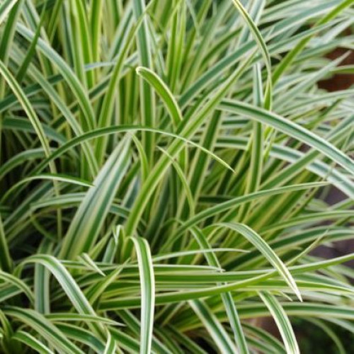 листвой с яркими кремово-белыми полосками. Этот сорт осоки пользуется