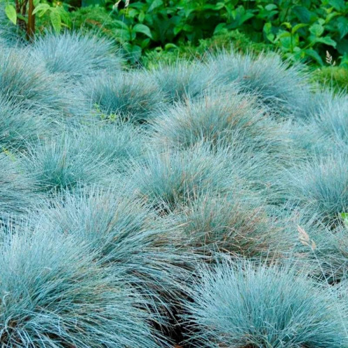 Овсяница сизая (Festuca glauca) – популярный декоративный злак, который высоко ценится за изысканную серебристо-голубую окраску листвы и идеальную шаровидную форму. Это многолетнее травянистое растение, достигающее во взрослом состоянии высоты 20-25 см при диаметре куста 25-35 см, формирующее плотные, полусферические кочки с многочисленными тонкими листьями. Листья игольчатые, узкие, жесткие, интенсивного сизо-голубого цвета с серебристым оттенком, сохраняют декоративность в течение всего года. Соцветия - серо-зеленые метелки на тонких прямых цветоносах высотой до 50-60 см, появляются в июне-июле.