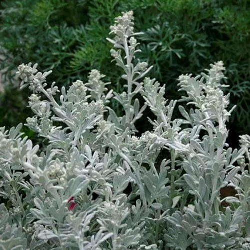 Полынь Стеллера «Сильвер Брокед» (Artemisia stelleriana 'Silver Brocade') – декоративный многолетник, который ценится за ажурную серебристую листву и исключительную засухоустойчивость. Это почвопокровное растение образует плотные ковры высотой 15-30 см с диаметром куртины до 60-80 см. Листья перисто-рассеченные, кружевные, длиной 5-8 см, покрытые густым серебристо-белым опушением, создающим эффект инея. Молодые листья имеют особенно яркий серебристый оттенок, который сохраняется в течение всего сезона. В июле-августе появляются невзрачные желтоватые цветочные корзинки, собранные в метельчатые соцветия, но основную декоративность растению придает именно листва.