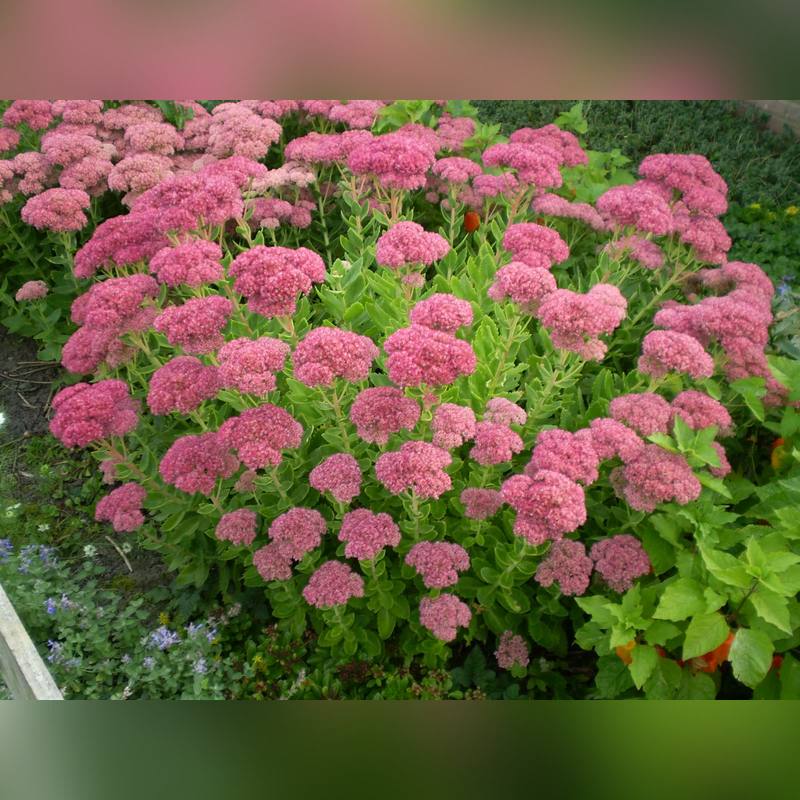 Седумы в ассортименте (очитки многолетние) - разнообразная коллекция выносливых многолетников, которые ценятся за декоративность в течение всего сезона, исключительную неприхотливость и способность расти в экстремальных условиях. Растения представлены в широком диапазоне размеров: от почвопокровных форм высотой 20 см до кустовых сортов, достигающих 60-80 см. Листья мясистые, разнообразной формы и окраски - от серебристо-зеленых и голубоватых до пурпурных и бронзовых, у многих сортов осенью приобретают дополнительные декоративные оттенки. Главная особенность седумов - зонтиковидные или щитковидные соцветия звездчатых цветков белого, желтого, розового или красного цвета. Цветение продолжительное - с июня по сентябрь в зависимости от вида, привлекает в сад пчел и бабочек.