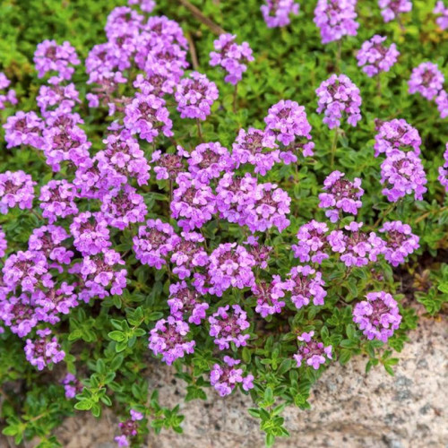 Тимьян великолепно смотрится в альпинариях, рокариях и гравийных садах, создавая плотные ароматные ковры. Идеален для обрамления садовых дорожек, посадки в расщелинах подпорных стенок и создания пряных газонов. Прекрасно сочетается с другими засухоустойчивыми растениями (очитки, молодило, злаки) и подходит для контейнерного озеленения. Широко используется в кулинарии как пряность и в народной медицине благодаря антисептическим свойствам.