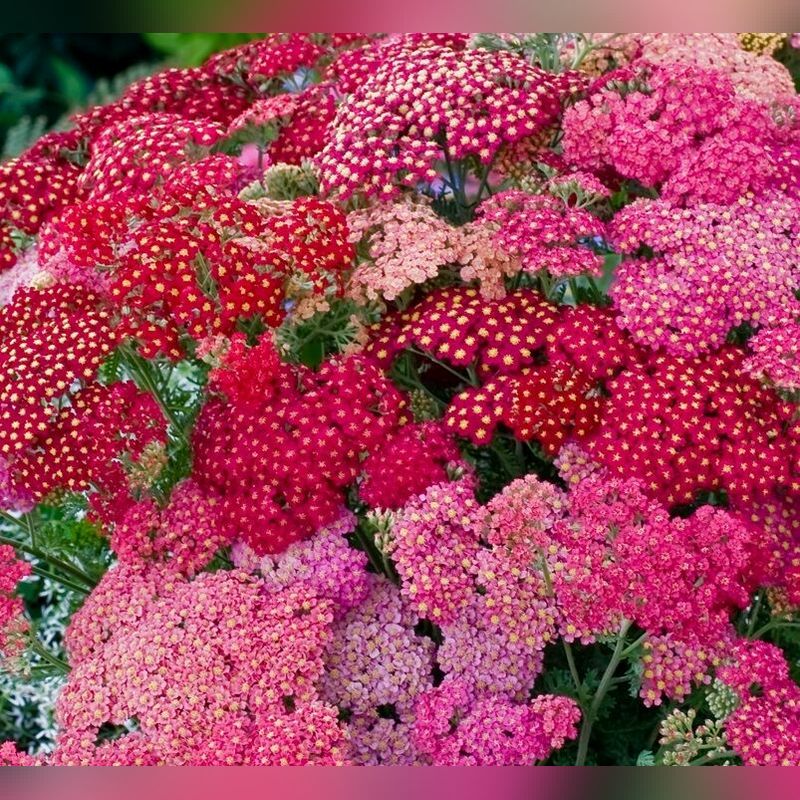 Тысячелистник обыкновенный «Саммер Берри» (Achillea millefolium Summer Berries) - это декоративный многолетник, который отличается яркими соцветиями, состоящими из мелких цветков, собранных в плотные зонтики. Этот сорт примечателен разнообразием оттенков - от розовых и красных до малиновых и бордовых тонов, что делает его привлекательным элементом в любом саду. Высота растения может достигать 50-60 см, а ширина - около 30-40 см. Листва тысячелистника перистая, нежно-зеленого цвета, что придает растению легкий и изящный вид.