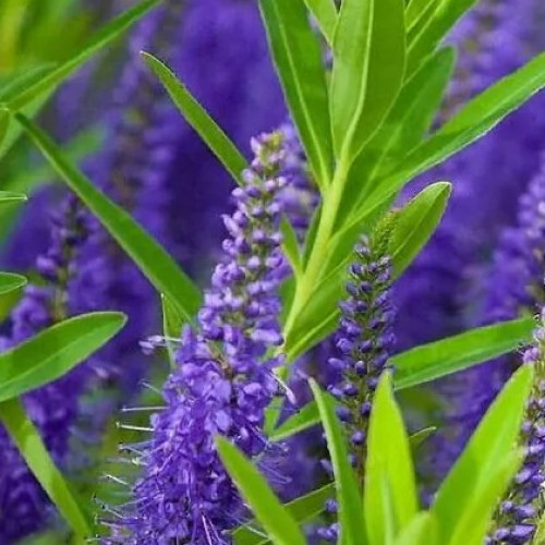 Вероника длиннолистная (синяя) - это многолетнее травянистое растение, которое ценится за свою выразительную окраску и устойчивость к условиям сада. Растение достигает в высоту от 60 до 120 см. Стебли прямостоячие, сильные, покрытые продолговатыми листьями тёмно-зелёного цвета, слегка зубчатыми по краям. Листья придают кусту плотную и густую структуру. Основная декоративная ценность растения заключается в его цветах, которые собраны в колосовидные соцветия длиной 20-30 см. Цветы имеют ярко-синий или голубой оттенок. Цветение начинается в июне и продолжается до августа.