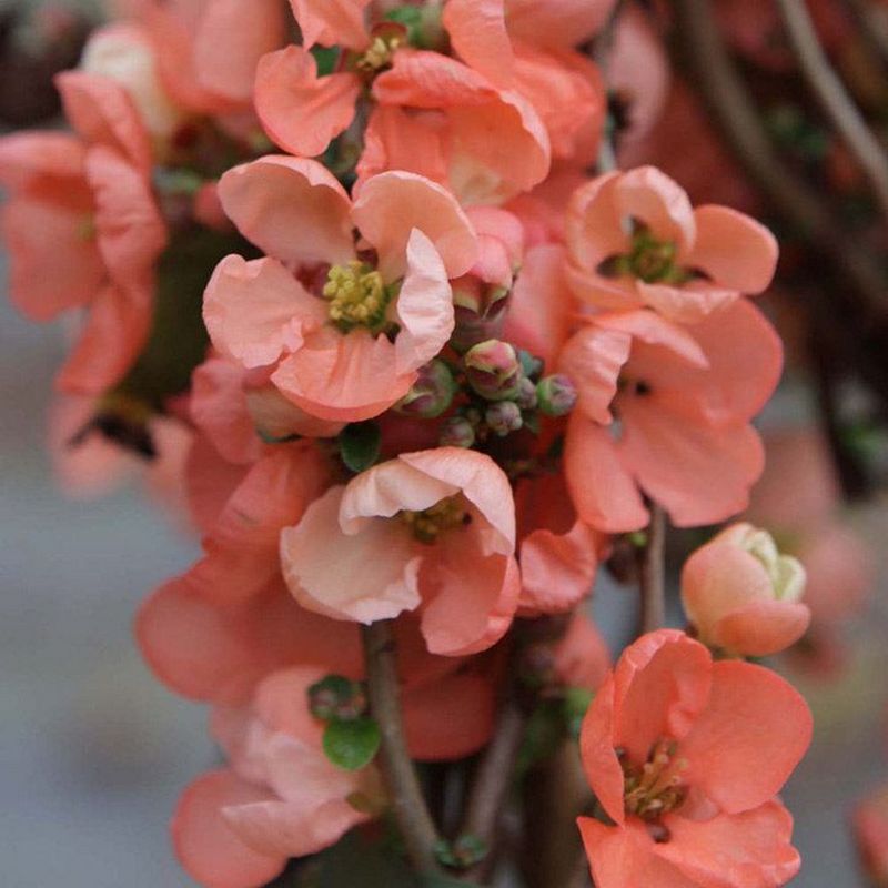 Айва «Салмон Горизон» (Chaenomeles × superba Salmon Horizon) – популярный декоративный кустарник, который высоко ценится за крупные цветки нежного лососево-розового оттенка и раскидистую форму роста. Это листопадный кустарник, достигающий во взрослом состоянии высоты 0,8-1,5 м при диаметре кроны 1,2-1,5 м, формирующий живописную, горизонтально направленную форму с изящно склоненными ветвями. Листья овальные, глянцевые, темно-зеленые, с мелкозубчатым краем. Цветки крупные (диаметром 3,5-4,5 см), нежного лососево-розового цвета с золотистыми тычинками, обильно покрывают ветви в апреле-мае. Плоды ароматные, желто-зеленые, созревают в сентябре.