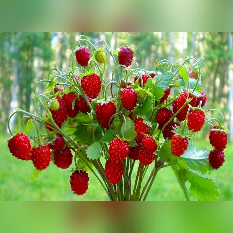 Земляника Барон Солемахер (Fragaria × ananassa Baron Solemacher) — классический ремонтантный безусый сорт мелкоплодной альпийской земляники, который ценится за непрерывное плодоношение с конца весны до осенних заморозков, исключительную неприхотливость и насыщенный, сладкий вкус ягод с ароматом лесной земляники. Это растение формирует плотные, компактные, полушаровидные кустики высотой 20–25 см. Листья мелкие, светло-зелёные, нежные. Усов сорт не образует, размножается исключительно семенами или делением куста, что делает его неагрессивным и идеальным для оформления бордюров. Цветоносы тонкие, многочисленные, возвышаются над листвой, несут мелкие белые цветки. Главная хозяйственная особенность сорта — обильное и длительное плодоношение. Ягоды мелкие (массой 3–5 г), правильной удлинённо-конической формы. Кожица ярко-красная, блестящая. Мякоть нежная, сочная, очень ароматная. Вкус отличный, интенсивно сладкий, с ярко выраженным земляничным ароматом, без кислинки. Первые ягоды созревают уже в июне, а массовое плодоношение длится волнами до сентября-октября. Урожайность высокая для мелкоплодной формы. Ягоды не предназначены для длительной транспортировки, их употребляют свежими или перерабатывают сразу после сбора.