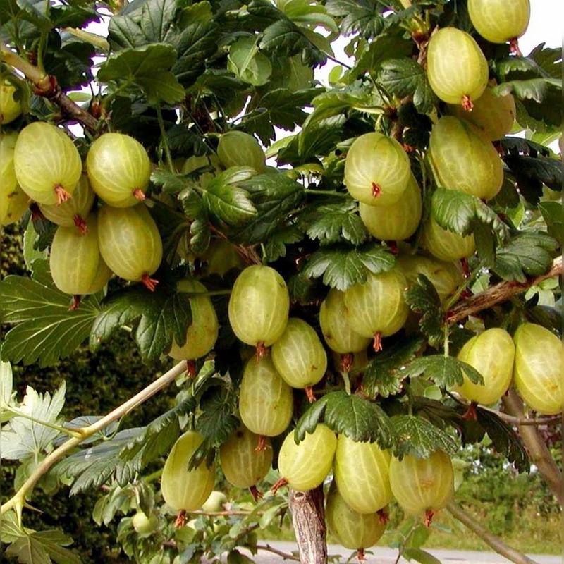 Крыжовник «Инвикта» – популярный высокоурожайный сорт крыжовника, который ценится за крупные ягоды десертного вкуса и высокую устойчивость к заболеваниям. Это сильноветвистый кустарник, достигающий во взрослом состоянии высоты 1,2-1,6 м при диаметре кроны 1,5-1,8 м, формируя раскидистую, мощную форму. Побеги покрыты многочисленными шипами, что требует осторожности при уходе и сборе урожая. Ягоды крупные (массой 6-8 г), овально-округлой формы, при полном созревании приобретают насыщенный желто-зеленый цвет с красивым восковым налетом. Мякоть сочная, нежная, с гармоничным кисло-сладким вкусом и тонким ароматом.