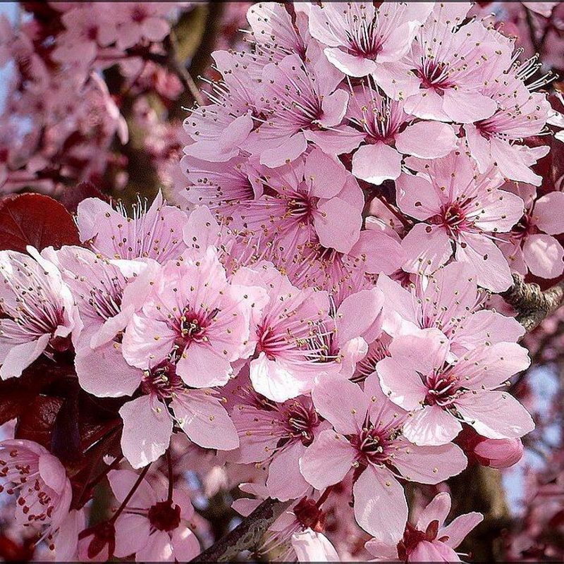 Весной, во время распускания, листья черёмухи имеют светло-зелёный цвет, но по мере развития они постепенно меняют окраску на насыщенный пурпурный или бордовый оттенок. Эта уникальная особенность делает дерево очень декоративным. Цветение происходит в мае, когда на дереве появляются густые кисти белых ароматных цветов, контрастирующих с яркой листвой.