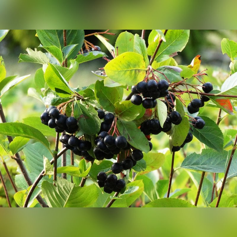 Рябина черноплодная, также известная как арония (Aronia melanocarpa), - это многолетний кустарник, принадлежащий к семейству розоцветных. Она отличается своей декоративностью и высокой урожайностью, а также полезными для здоровья ягодами. Этот кустарник обычно достигает до 2-3 м в высоту и формирует густую крону с раскидистыми ветвями. Листья простые, овальные, тёмно-зелёные летом, осенью приобретают яркий красный или оранжевый оттенок, что делает аронию привлекательной в этот период.