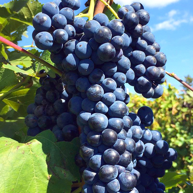 Плоды сорта собраны в плотные гроздья среднего размера, каждая из которых весит примерно 200-300 граммов. Ягоды тёмно-синие, почти чёрные, с толстой кожицей, которая защищает их от повреждений и делает устойчивыми к дождливой погоде. Вкус ягод насыщенный, с гармоничным балансом между сладостью и кислотностью. В аромате ощущаются ягодные и фруктовые ноты. Плоды созревают в конце августа - начале сентября.