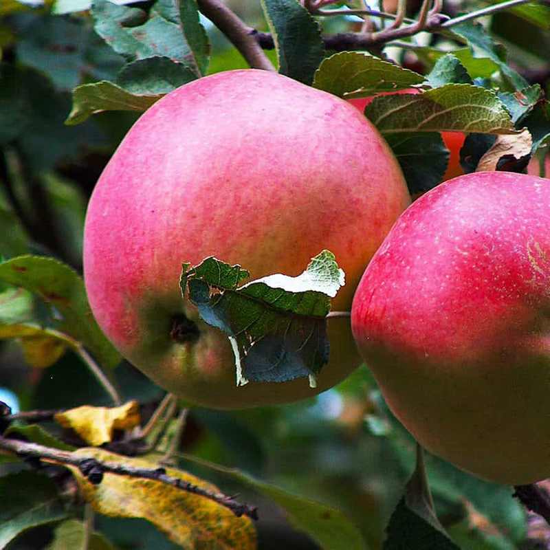 Яблоня «Апорт» - один из самых известных сортов, ценимый за крупные и ароматные плоды. Дерево высокое, с мощной и раскидистой кроной, которая может достигать 8-10 м в высоту. Листья крупные, овальной формы, насыщенного зелёного цвета с зубчатыми краями. Цветки у яблони бело-розовые, крупные, распускаются весной. Этот сорт отличается не только крупными плодами, но и высокой морозостойкостью, что делает его подходящим для выращивания в разных климатических зонах.