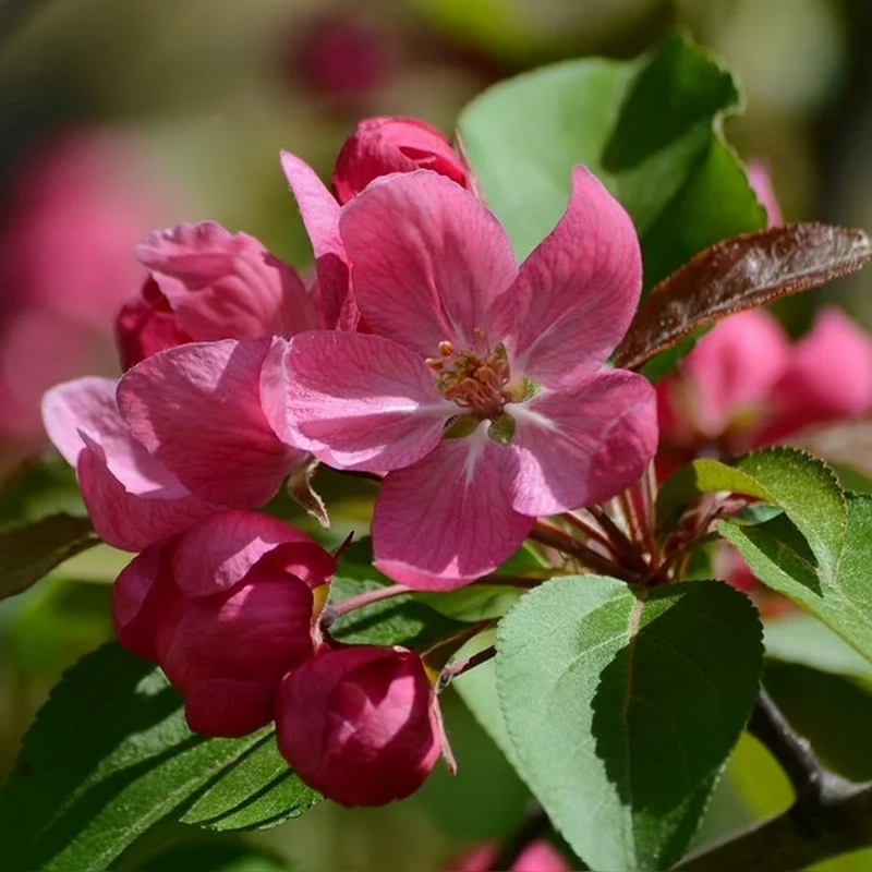 Для посадки декоративной яблони лучше выбирать хорошо освещённые участки, которые обеспечат яркость листьев и цветов. Почва должна быть плодородной, рыхлой и с нейтральной реакцией. При подготовке посадочной ямы глубиной и шириной около 60-70 см на дно укладывают дренажный слой из гравия или битого кирпича, чтобы предотвратить застой воды. Затем добавляют смесь садовой почвы и перегноя для улучшения питательности. При посадке корневую шейку оставляют на уровне земли, чтобы избежать загнивания корней. После посадки дерево нужно хорошо полить.