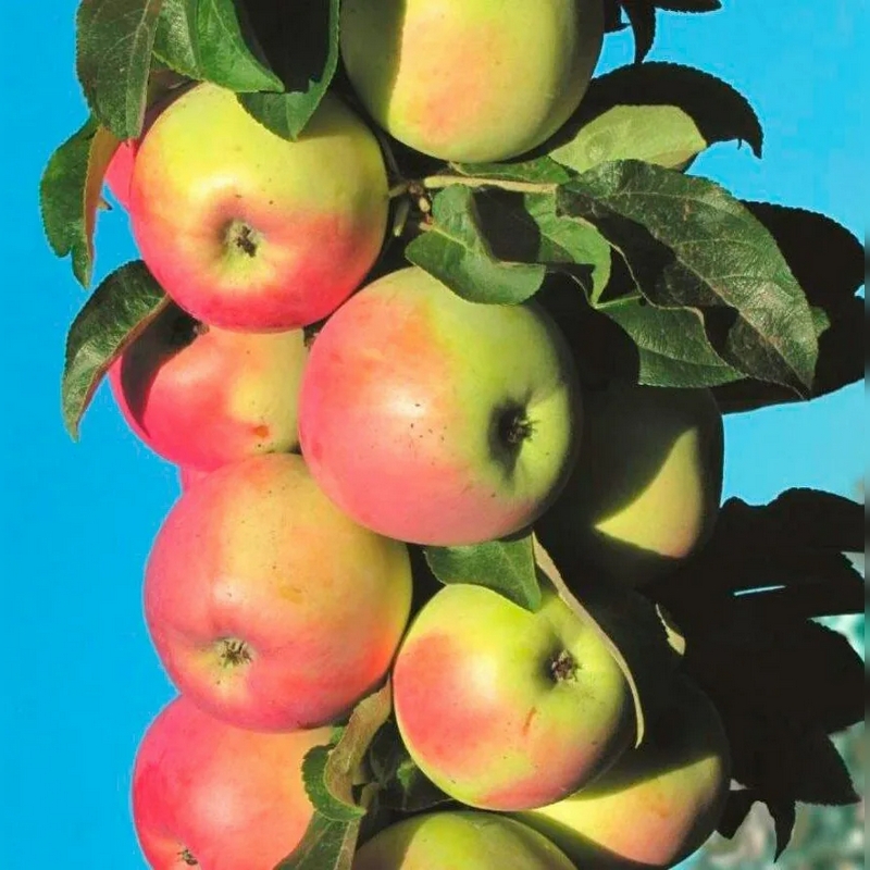 Колоновидная яблоня «Зелёный шум» - это декоративное плодовое дерево с узкой вертикальной кроной. Сорт отличается компактностью и устойчивостью, что делает его идеальным для небольших садов и интенсивной посадки. Дерево вырастает до 2-2,5 м в высоту и практически не образует боковых ветвей, сохраняя стройную колонновидную форму и позволяя выращивать его плотными рядами.