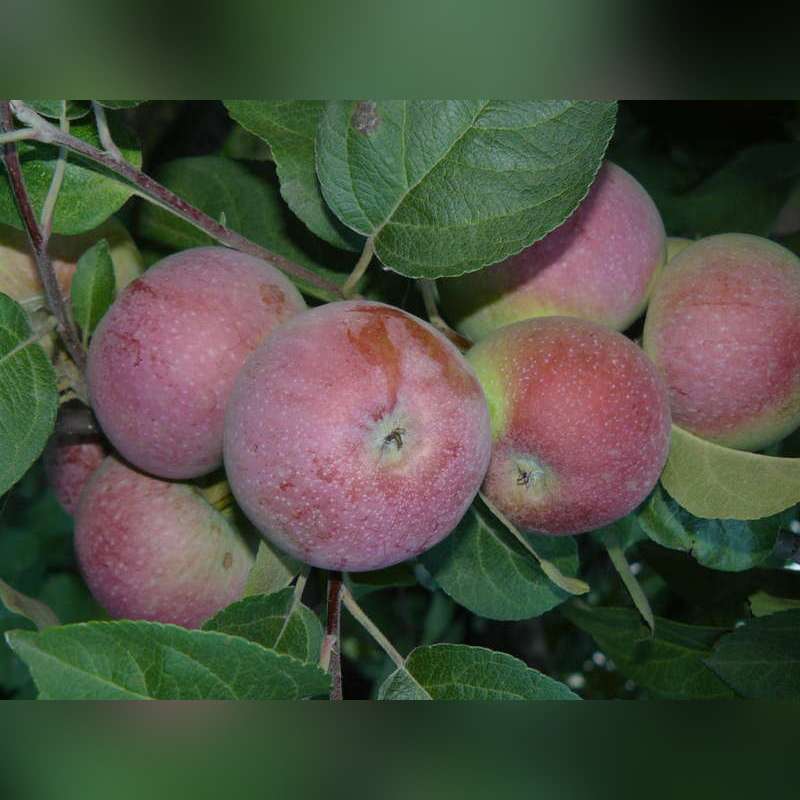 Плоды крупные, округлые или слегка плоские, с ярко-красной или малиновой кожицей, которая иногда покрыта восковым налётом. Мякоть плодов белая, очень сочная, нежная и хрустящая. Вкус сладкий с лёгкой кислинкой, с характерным ароматом, который делает этот сорт популярным для употребления в свежем виде. Яблоки созревают в сентябре и могут храниться до декабря, сохраняя свою свежесть и вкус. Плоды следует собирать в конце сентября, когда они полностью созрели.