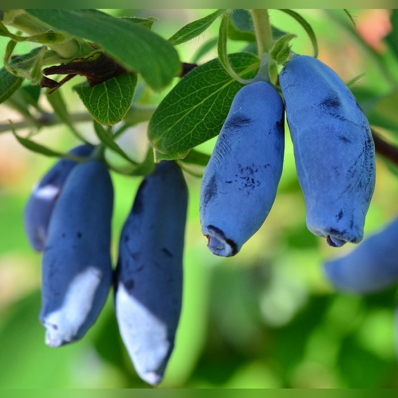Жимолость «Аврора» – популярный канадский сорт жимолости, который высоко ценится за очень крупные сладкие ягоды и стабильную урожайность. Это кустарник, достигающий во взрослом состоянии высоты 1,2 м при диаметре кроны 1,2-1,4 м, образовывая округлую, слегка раскидистую форму. Ягоды очень крупные (длиной 2,5-3 см, массой 2-2,5 г), удлиненно-цилиндрические, с сине-голубым восковым налетом. Мякоть нежная, сочная, с преобладанием сладости над кислотностью, десертного вкуса без горечи.