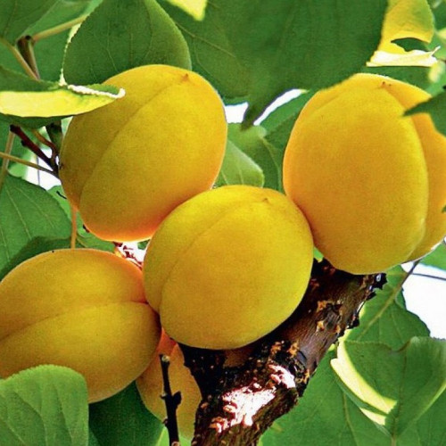 Абрикосовые плоды достаточно крупные и упругие. Форма плодов округлая, немного приплюснутая. Они окрашены в желтый оттенок с небольшим румянцем. Кожица абрикосов слегка припушена маленькими волосками. Мякоть сочная, сладкая, с легкой кислинкой. Косточка свободно отделается от мякоти. Плоды дерева отлично переносят транспортировку, не искажая свой внешний привлекательный вид. С одного такого дерева иногда можно получить до 30 килограммов сочных абрикосов.
