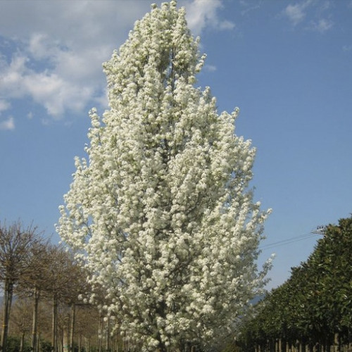 Груша каллериана «Шантеклер» - это декоративное, листопадное дерево, с изящной кроной и обильным весенним цветением. Дерево достигает 10 метров в высоту. Его крона имеет пирамидальную или широко-овальную форму с аккуратной симметричной структурой. Листья плотные, темно-зеленые летом, осенью - желтые, оранжевые и красные. Весной дерево покрывается белоснежными цветами, которые создают плотные цветочные облака и привлекают пчел. Плоды мелкие, диаметром до 1-2 см, зеленовато-желтые, несъедобные для людей.