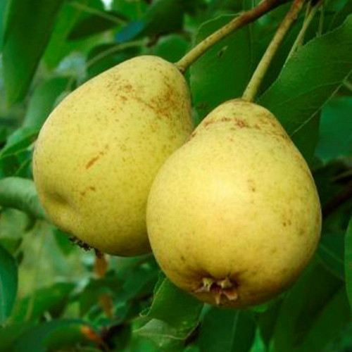 Груша «Полесская» (Pyrus ‘Polesskaya’) – популярный и надежный сорт груши, ценящийся за отличные вкусовые качества плодов и стабильную урожайность. Это среднерослое дерево, достигающее 3,5-4,5 м в высоту, с компактной, пирамидальной или округлой кроной средней густоты. Кора серовато-коричневая. Листья гладкие, темно-зеленые, с глянцевым блеском. Главное достоинство сорта – красивые, крупные плоды классической грушевидной формы. В период съемной зрелости груши имеют зеленоватую окраску, которая в процессе хранения сменяется на золотисто-желтую с легким размытым румянцем.