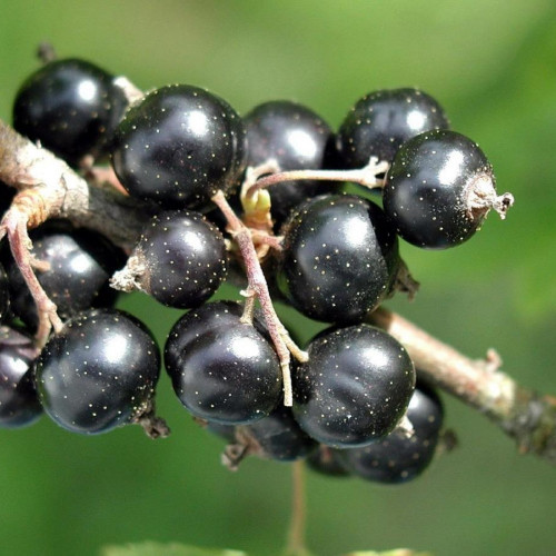 Смородина чёрная «Ядреная» - это популярный сорт, выведенный российскими селекционерами, известный крупными ягодами и высокой урожайностью. Куст этого сорта среднерослый, с мощными прямостоячими побегами, достигающими около 1,2–1,5 м в высоту. Листья тёмно-зелёные, крупные и плотные. Ягоды отличаются крупным размером (иногда до 6 гр), округлой или слегка овальной формой и чёрной окраской. Они обладают плотной кожицей и сочной мякотью с характерным кисло-сладким вкусом, который ценят как в свежем виде, так и при переработке (варенье, компоты, соки). Созревание плодов начинается в середине июля. Сорт считается раннеспелым и даёт хороший стабильный урожай даже в неблагоприятных климатических условиях.
