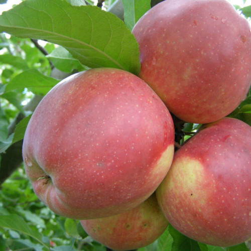 Плоды яблони крупные, округлые, с гладкой, блестящей кожицей, окрашенной в ярко-красный цвет с жёлтым оттенком на затенённой стороне. Мякоть плодов сочная, плотная, хрустящая, кремово-белого цвета. Вкус яблок сладкий с лёгкой кислинкой и приятным ароматом. Созревают плоды в октябре, собирать их нужно в конце месяца.