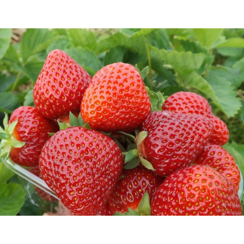 Клубника «Марышка» - это ранний сорт клубники, известный своими сладкими и ароматными плодами. Этот сорт особенно ценится за стабильную урожайность, отличные вкусовые качества ягод и хорошую устойчивость к заболеваниям. «Марышка» отлично подходит для выращивания как в открытом грунте, так и в теплицах, что делает её универсальным выбором для садоводов. Растение представляет собой мощный куст с крепкими, прямостоячими стеблями и густой листвой. Листья средние по размеру, ярко-зелёные, с глянцевой поверхностью. Кусты компактные, но с большим количеством цветоносов, что способствует высокой урожайности. Цветоносы прочные, находятся на уровне или немного выше листьев, что облегчает сбор урожая и предотвращает контакт ягод с почвой. Плоды клубники средние и крупные, округло-конической формы, с гладкой и блестящей кожицей ярко-красного цвета. Средний вес ягод составляет около 20-30 гр, но при хорошем уходе плоды могут быть и крупнее. Мякоть ягод плотная, сочная, с насыщенным сладким вкусом и ярким ароматом. Благодаря своим вкусовым качествам ягоды отлично подходят как для свежего потребления, так и для приготовления варенья, джемов, компотов и замораживания.