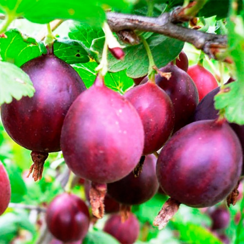 Крыжовник «Салют» - это высокоурожайный и устойчивый сорт, который ценится за свои крупные и вкусные плоды, а также за хорошую адаптацию к различным климатическим условиям. Кустарник среднерослый, достигает 1,2–1,5 м в высоту. Крона густая, раскидистая, с крепкими, слегка поникающими побегами, на которых имеются редкие, но острые шипы. Листья зелёные, трёх- или пятилопастные, среднего размера, с глянцевой поверхностью. Плоды крыжовника «Салют» крупные, округло-овальной формы, с гладкой кожицей, окрашенной в насыщенный тёмно-красный или бордовый цвет. Мякоть ягод сочная, сладкая, с лёгкой кислинкой и приятным ароматом. Вкус плодов гармоничный, освежающий, что делает их идеальными для употребления в свежем виде, а также для переработки - варенья, джемов, компотов и замораживания.
