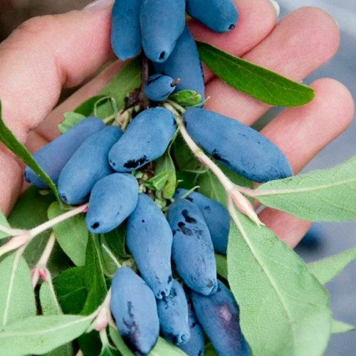 Жимолость «Аврора» – популярный канадский сорт жимолости, который высоко ценится за очень крупные сладкие ягоды и стабильную урожайность. Это кустарник, достигающий во взрослом состоянии высоты 1,2 м при диаметре кроны 1,2-1,4 м, образовывая округлую, слегка раскидистую форму. Ягоды очень крупные (длиной 2,5-3 см, массой 2-2,5 г), удлиненно-цилиндрические, с сине-голубым восковым налетом. Мякоть нежная, сочная, с преобладанием сладости над кислотностью, десертного вкуса без горечи.