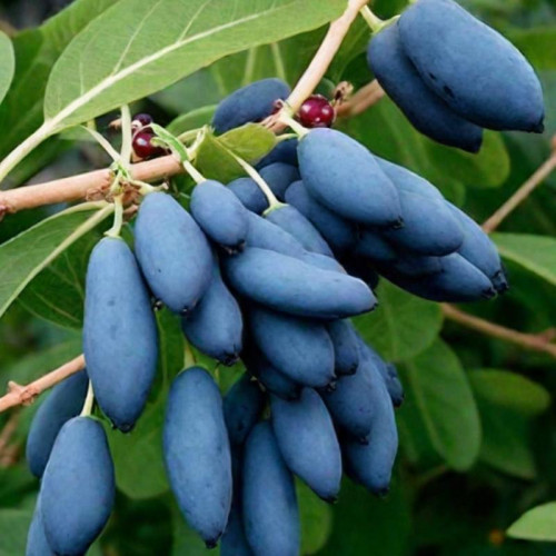 Жимолость «Гордость Бакчара» – популярный среднеспелый сорт жимолости, который ценится за очень крупные плоды и стабильно высокую урожайность. Это среднерослый кустарник, достигающий во взрослом состоянии высоты 1,4-1,6 м при диаметре кроны 1,2-1,4 м, образуя полураскидистую, компактную форму. Ягоды очень крупные (длиной 3,5-4,5 см, массой 1,3-2,5 г), кувшиновидной формы, с сине-фиолетовой кожицей и интенсивным восковым налетом. Мякоть плотная, сочная, кисло-сладкого вкуса с приятной освежающей кислинкой, без горечи.