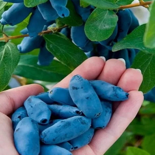 Жимолость «Индиго Джем» – популярный высокоурожайный сорт жимолости, который ценится за исключительную десертность плодов и стабильное плодоношение. Это листопадный кустарник, достигающий во взрослом состоянии высоты 1,2-1,5 м при диаметре кроны 1,2-1,4 м, формируя компактную, округлую форму. Плоды средние и крупные (длиной 1,8-2,2 см), овально-удлиненной формы, покрытые интенсивным восковым налетом, придающим им характерный индигово-синий оттенок. Мякоть нежная, сочная, с изысканным сладким вкусом и тонким ароматом, полностью лишена горечи.